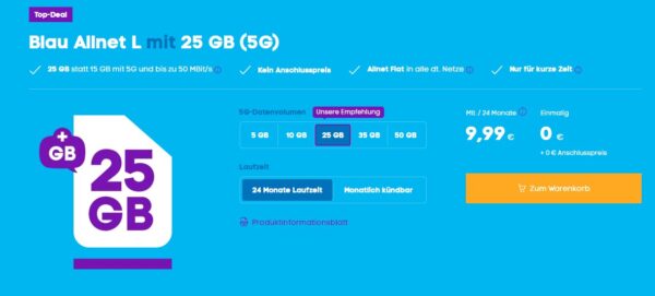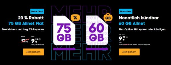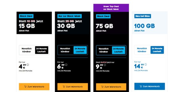 Neue Tarife von Blau zum Black November, dort bekommt ihr z.B. die Blau Allnet-Flat inkl. 30GB/5G LTE im o2-Netz für 6,99€/Monat – 0€ AG