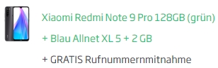 Denn über unsere Bonus-Deals bekommt man den Blau Allnet XL-Tarif (Allnet- & SMS-Flat, 7 GB LTE) inkl. Xiaomi Redmi Note 9 Pro (128 GB) + 30€ BestChoice-Gutschein für 13,99€/Monat – eff. 3,86€/Monat.