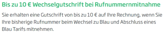 - Vorteil: EU-Roaming, 10€ Rufnummerbonus