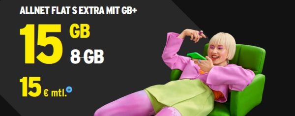Wem die 44GB zu viel sind, der kann auch zu der Allnet Flat S Extra greifen, welche mit 15GB Datenvolumen ausgestattet ist (statt 8GB) und hier werden 15€/Monat berechnet.