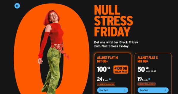 Krass, auch Congstar hat nun sein Black Friday Angebot gestartet, dort bekommt ihr eine mtl. kündbare 100GB + 100GB Relax Pass 5G + Alles-Flat + jedes Jahr 5GB mehr für 24€/Monat