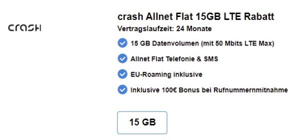 - Surfen: 15 GB LTE Internet-Flatrate (Mit bis zu 50 MBit/s)