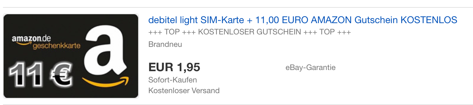 Dort gibt es für den Kauf einer SIM-Karte für 1,95€ = 3€ Startguthaben + einen 12€ Amazon.de Gutschein*