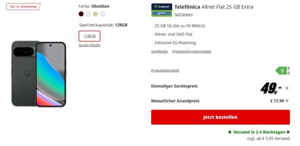 Schöner Deal seitens MediaMarkt zum Start in das Wochenende, dort bekommt ihr das Google Pixel 10 + 25GB 5G + Alles-Flat im o2-Netz für 17,99€/Monat