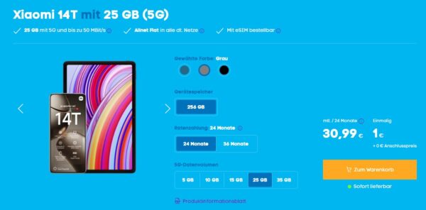 Stark! Im Onlineshop von Blau könnt ihr euch jetzt das brandneue Xiaomi 14T + Redmi Pad Pro + 25GB LTE/5G + Alles-Flat im o2-Netz für 30,99€/Monat sichern