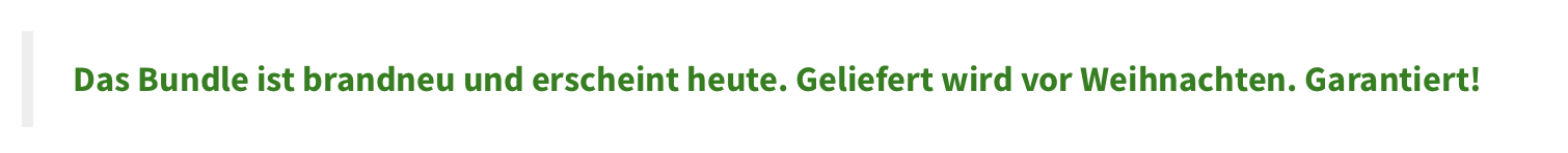 Das Bundle ist brandneu und erscheint heute. Geliefert wird vor Weihnachten. Garantiert!
