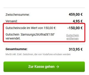 - = Rechnerische Tarifkosten von -150,29€ über 24 Monate = -6,26€/Monat für den reinen Tarif, hättet ihr euch das Gerät sowieso regulär gekauft.