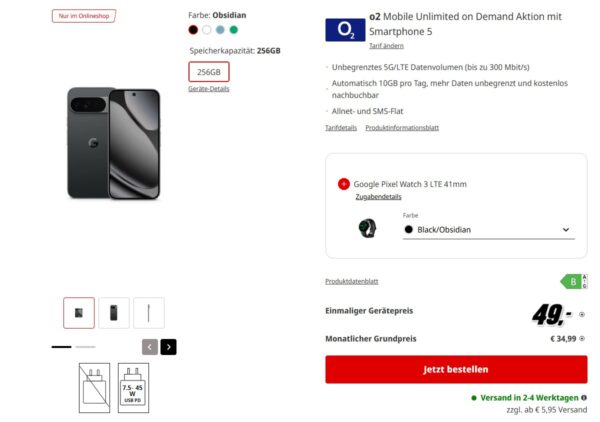 Im Rahmen der aktuellen Karnevals-Aktion bei MediaMarkt bekommt ihr das Google Pixel 10 Pro XL + Watch 3 LTE + Unlimited 5G + Alles-Flat im o2-Netz für 34,99€/Monat
