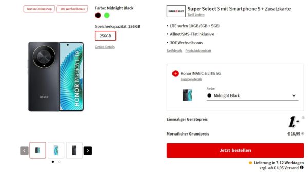 - Vorteil: 2x Honor Magic 6 Lite 5G