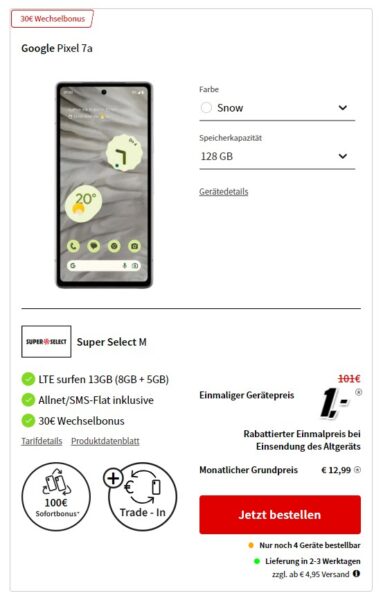 Fazit: Schönes Angebot mit dem Google Pixel 7a im o2-Netz, bei Interesse sollte man hier nicht lange zögern.