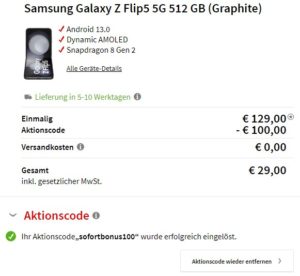 Gebt im Warenkorb den Gutschein sofortbonus100 ein und schon reduziert sich die Zuzahlung auf nur noch 29€.