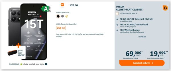 *EFF. 265€ ERSPARNIS* Xiaomi 15T 5G + Party Lautsprecher + 50GB 5G + Alles-Flat im Vodafone-Netz für 19,99€/Monat