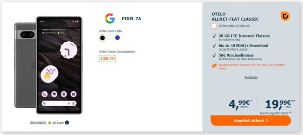 *EFF. 34€ ERSPARNIS* Google Pixel 7a + 20GB LTE + Alles-Flat im Vodafone-Netz für 19,99€/Monat
