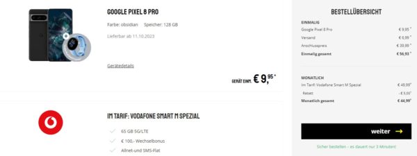 *EFF. 461€ ERSPARNIS* Google Pixel 8 Pro + Pixel Watch 2 + 65GB LTE + Alles-Flat im Vodafone-Netz für 44,99€/Monat