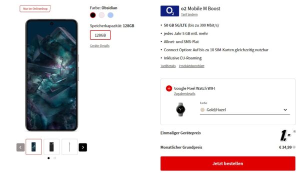 *EFF. 49€ ERSPARNIS* Google Pixel 8 Pro + Pixel Watch + 50GB LTE + Alles-Flat im o2-Netz für 34,99€/Monat