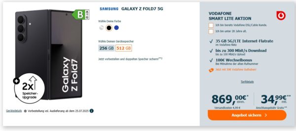 *EFF. 500€ ERSPARNIS* Samsung Galaxy Z Fold7 5G + 35GB 5G + Alles-Flat im Vodafone-Netz für 34,99€/Monat
