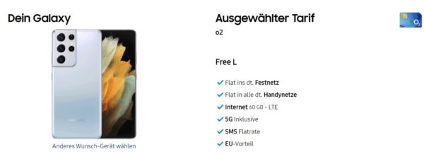 Im Onlineshop von Samsung bekommt ihr einen richtigen Kracher, das Samsung Galaxy Ultra 5G + 60GB LTE + Alles-Flat im o2-Netz für 39,99€/Monat
