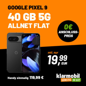 *EFF. 95€ ERSPARNIS* Google Pixel 9 + 40GB LTE/5G + Allnet-Flat im VF-Netz für 19,99€/Monat