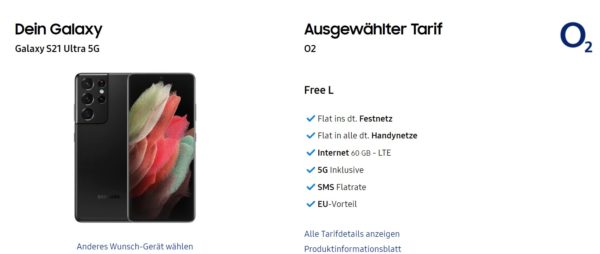 Im Onlineshop von Samsung bekommt ihr gerade ein richtiges starkes Angebot, das Samsung Galaxy Ultra (128GB) + 60GB LTE + Galaxy Buds Pro im o2-Netz für 39,99€/Monat