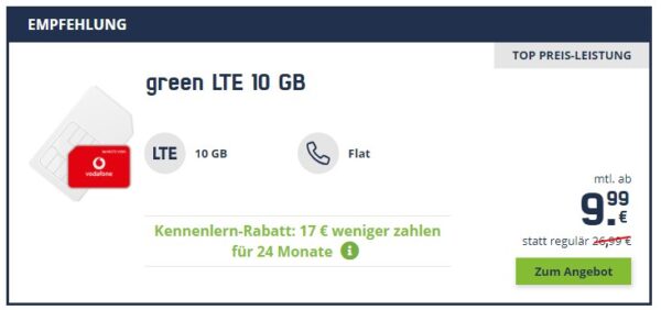 - freenet Vodafone green LTE 10 GB für 9,99€/Monat