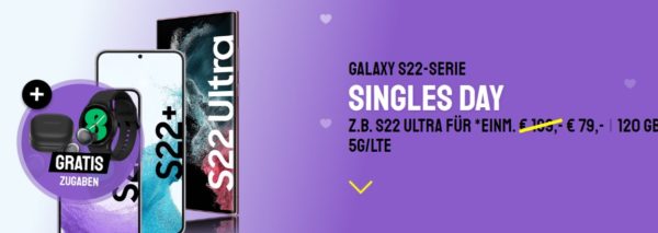 Galaxy S22 Ultra (512GB) + Watch 4 für 79€ + 120GB LTE & 5G o2 Allnet für 49,99€/Monat + 100€ RNM-Bonus (oder mit S22 / S22 Plus für 34,99€/Monat)