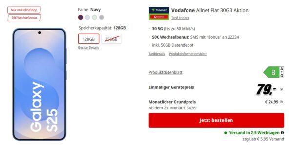 Fazit: Schöner Deal mit dem Galaxy S25 im Vodafone-Netz, bei Interesse sollte man zeitnah zugreifen.