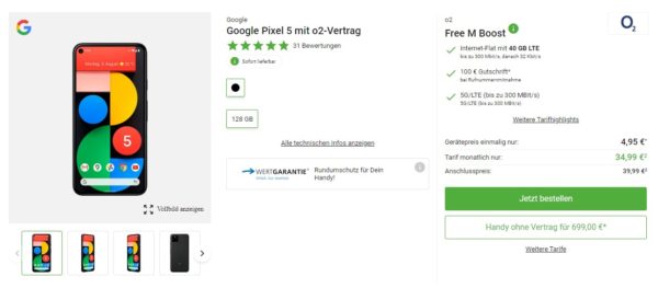 Google Pixel 5 + 40GB LTE + Alles-Flat im o2-Netz für 34,99€/Monat – Effektiv 1,61€/Monat + 100€ Bonus bei RNM möglich