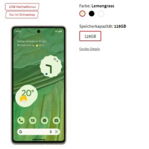 Starkes Angebot bei MediaMarkt, dort bekommt ihr zum Singles Day das Google Pixel 7 + 20GB LTE + Alles-Flat im o2-Netz für 29,99€/Monat + 100€ Wechselbonus
