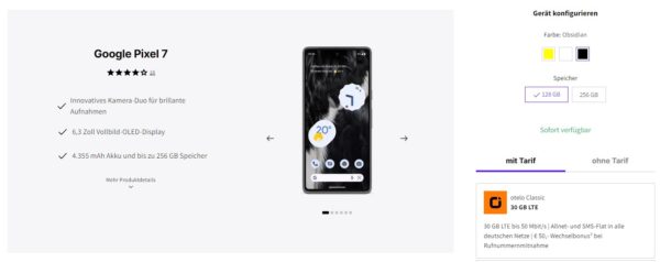Starkes Angebot bei DeinHandy, dort bekommt ihr das Google Pixel 7 + 30GB LTE + Alles-Flat im Vodafone-Netz für 19,99€/Monat