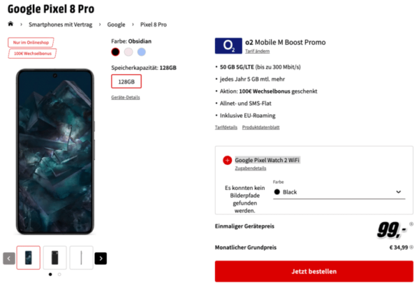 FEHLER!? 🔥 Google Pixel 8 Pro (128GB) für 99€ + GRATIS: Pixel Watch 2 + 50GB 5G/LTE Allnet für 34,99€/Monat + 100€ Wechselbonus! (o2 Mobile M Boost)