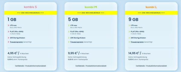 - S – 1GB // 50 Minuten // 50 SMS (statt 4,95€)