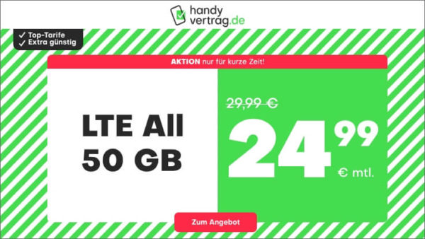 handyvertag.de: 50GB LTE Allnet-Flat für 24,99€/Monat (auch ohne Laufzeit!)