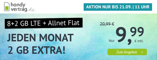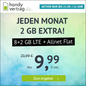 Bei Handyvertrag.de, einer Marke der Drillisch AG (SIM.de, Simply & Co.), erhaltet ihr die 10 GB LTE Allnet-Flat für 9,99€/Monat (auch ohne Vertragslaufzeit!). 🙂