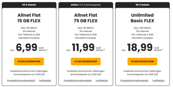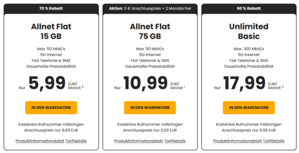 - Anschlusspreis: 9,99€ , entfällt bei der 75GB Variante