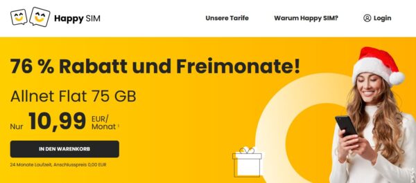 Fazit: Happy SIM ist ein neuer Anbieter. Die Kleintarife ab 5,99€ oder selbst die 75GB Allnet-Flat für 10,99€/Monat kann sich sehen lassen.