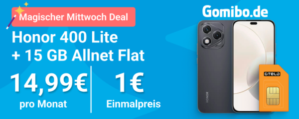 Als Magic-Mittwoch-Deal bekommt ihr diesmal bei Gomibo das Honor 400 Lite 8GB/256GB + 15GB 4G + Alles-Flat im Vodafone-Netz für 14,99€/Monat
