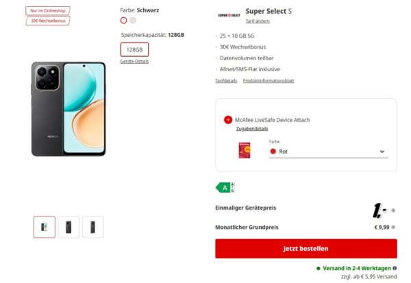 - = Rechnerische Tarifkosten von 117,71€ über 24 Monate = 4,90€/Monat für den reinen Tarif, hättet ihr euch das Gerät sowieso regulär gekauft.