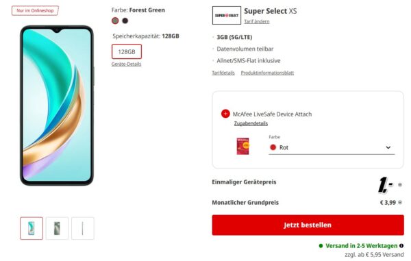 Low-Budget-Bundle seitens MediaMarkt, dort bekommt ihr das Honor X6B + 3GB 5G + Alles-Flat im o2-Netz für 3,99€/Monat