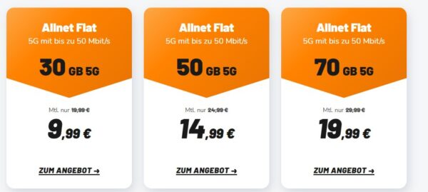 - Allnet Flat 50 GB 5G (Telekom-Netz) für 14,99€/Monat