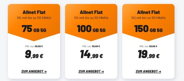 - Allnet Flat 75 GB 5G (Vodafone-Netz) für 9,99€/Monat