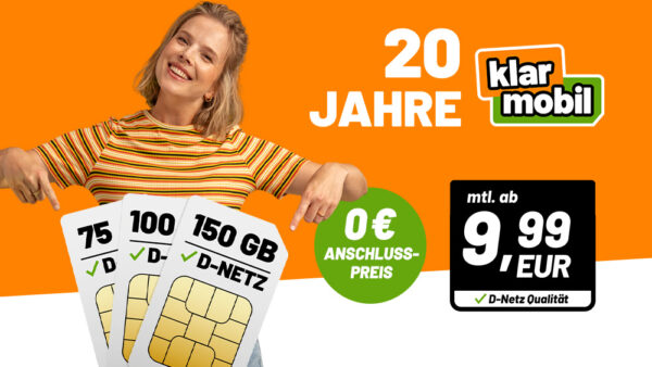 💥 klarmobil Geburtstags-Deals z.B. Vodafone-Netz, Allnet, SMS, mit mindestens 75GB 5G ab 9,99€/Monat – mtl. kündbar + ohne AG!