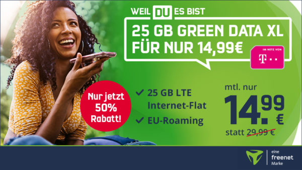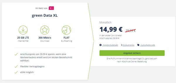 - 25GB LTE Datenflat im Telekom-Netz mit bis zu 300 MBit/s