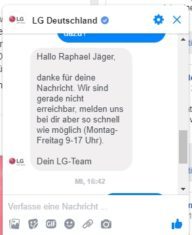 LG hat mich bei Facebook gesperrt. Ich denk das spricht nicht für den Laden.