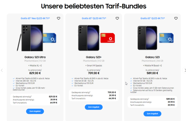 - *EFF. 409€ ERSPARNIS* Samsung Galaxy S23 (256GB) + 65″ TV + 50GB LTE + Alles-Flat im o2-Netz für 39,99€/Monat *WAHNSINN*