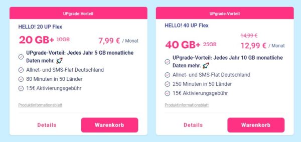 - Hello! 20 UP Flex für 7,99€/Monat
