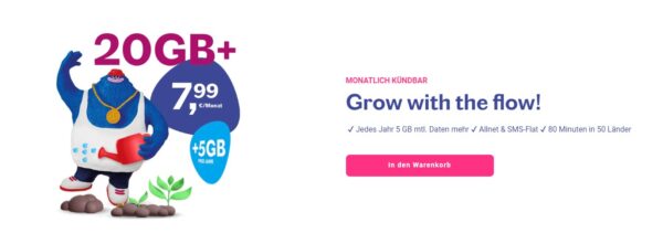 TOP wachsende Discount-Tarife ✔️ 20GB+ Allnet für 7,99€ (jedes Jahr 5GB mehr) ✔️ oder 40GB+ Allnet für 12,99€ (jedes Jahr 10GB mehr) (mtl. kündbar)