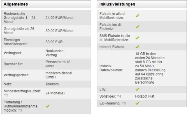 md 18GB LTE + Allnet-Flat + Hotspot-Flat im Telekom-Netz für 24,99€/Monat