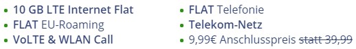 *BIS 19 UHR* *KNALLER* md green LTE 10 GB-Tarif (Allnet-Flat, 10 GB LTE, Telekom-Netz) für 9,99€/Monat
