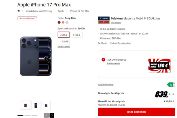 Fazit: Für alle die das iPhone 17 Pro Max im Telekom-Netz suchen, könnte dies das passende Angebot sein.