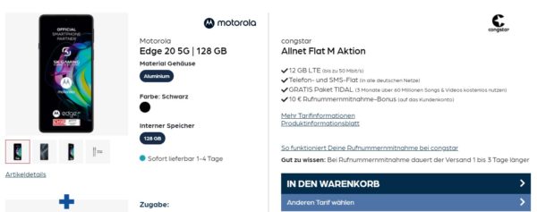 Fazit: Hier bekommt ihr das Motorola Edge 20 5G (128 GB) + 12 GB LTE + Alles-Flat im Telekom-Netz für effektiv 6,03€/Monat